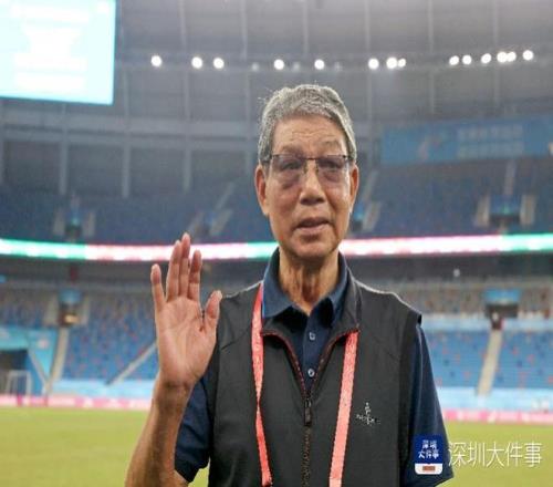 2025年11月8日,十五运会男子足球U20淘汰赛,赛后,上海队总教练、中国足坛名宿徐根宝与记者挥手告别。