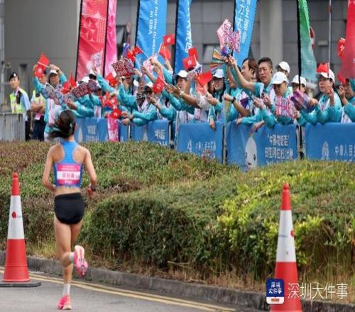 2025年11月15日,全运会首个跨境马拉松开跑,9时许,女子马拉松运动员从香港折返回到深圳湾口岸区域,路旁站满了为运动员加油的香港志愿者。