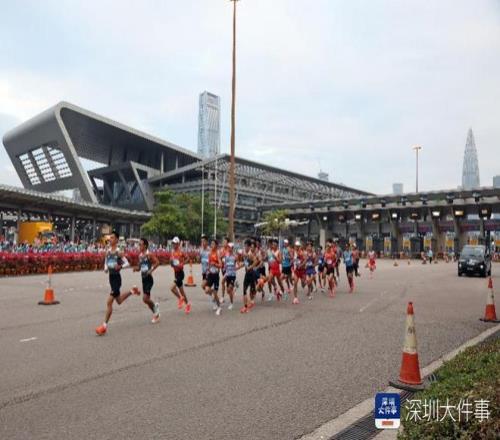 2025年11月15日,全运会首个跨境马拉松开跑,清晨7:06,男子马拉松大部队通过深圳湾口岸,跑入香港境内。
