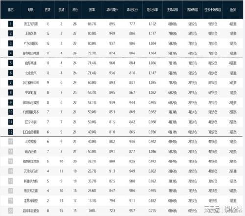 CBA积分榜